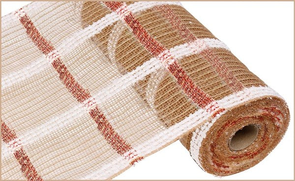 10.25" x 10yd Snowdrift/Jute/Tinsel Check - Natural/Red/White