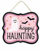 7"Lx6"H Tin Matte Ghost Signs - Happy Haunting