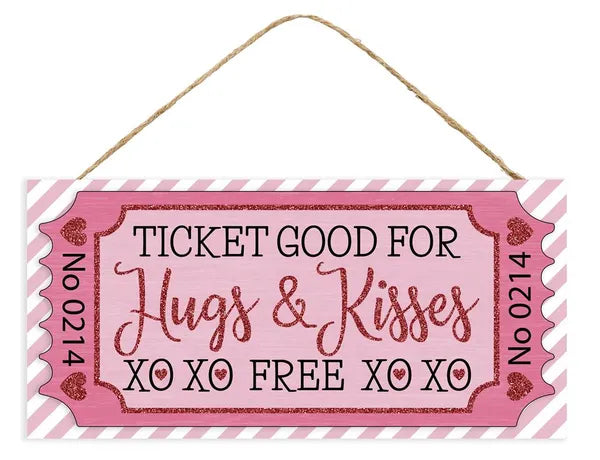 12.5"L x Glitter Ticket Hugs&Kisses Sign