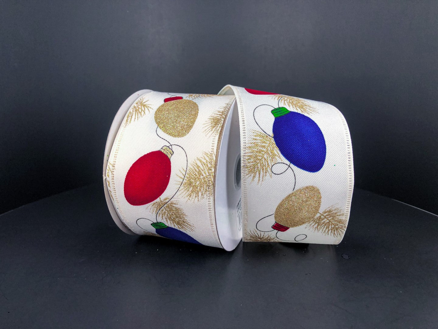 2.5" x 10yd Christmas Ornaments on Navy