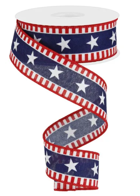 1.5" x 10yd Bold Star/Stripes Royal Burlap