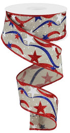 1.5" x 10yd Stars And Wavy Stripes/Royal