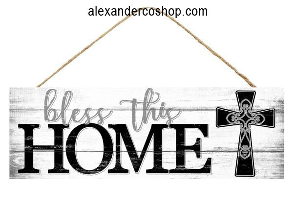 15"L x 5"H Bless This Home/Cross Sign