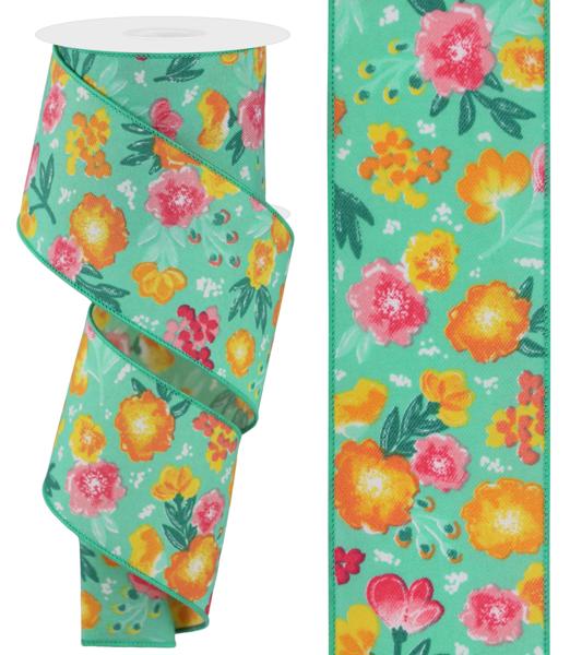 2.5" x 10yd Soft Florals On Diagonal Weave