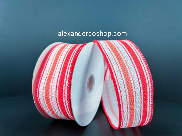 1.5" x 10yd White Coral-Melon Ticking Stripes